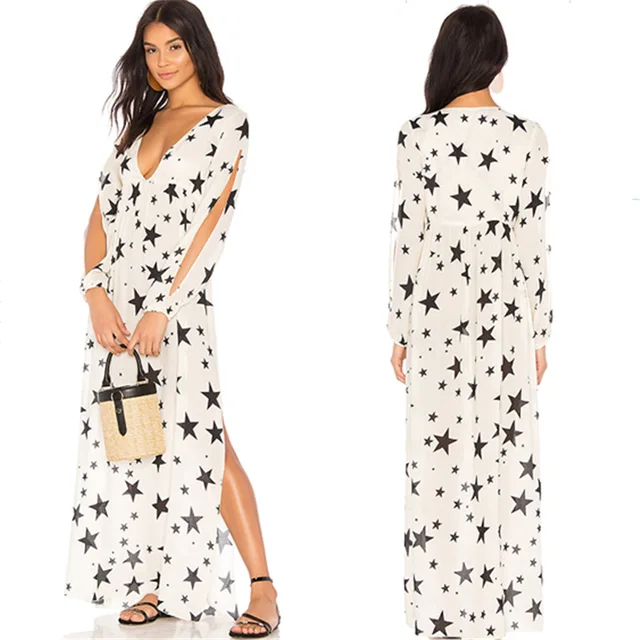 Compare - Beach Dress Woman Robe Plage Blanket Cover Up Cover-Ups Kaftan Swimsuit 2018 Pointed Star Printed Long Sleeve Animal Acetate Best Offers