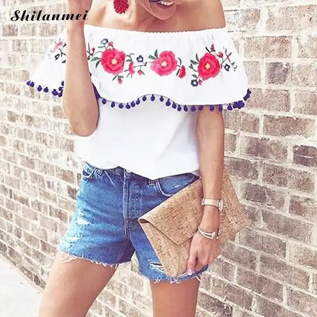 PLAVKY 2017 Sexy White Ruffled Off Shoulder Bandeau