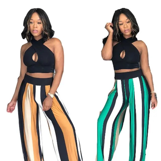 Clubwear Print Striped Two Piece Set Women 2018 Fashion Strapless Tops and Wide Leg Pants Suit Conjunto Feminino Party Jumpsuits Find Similar. US $22.26 Clubwear Print Striped Two Piece Set Women 2018 Fashion Strapless Tops and Wide Leg Pants Suit Conjunto Feminino Party Jumpsuits Macheda Summer Sexy Dress Women Wrapped Chest Red Belt