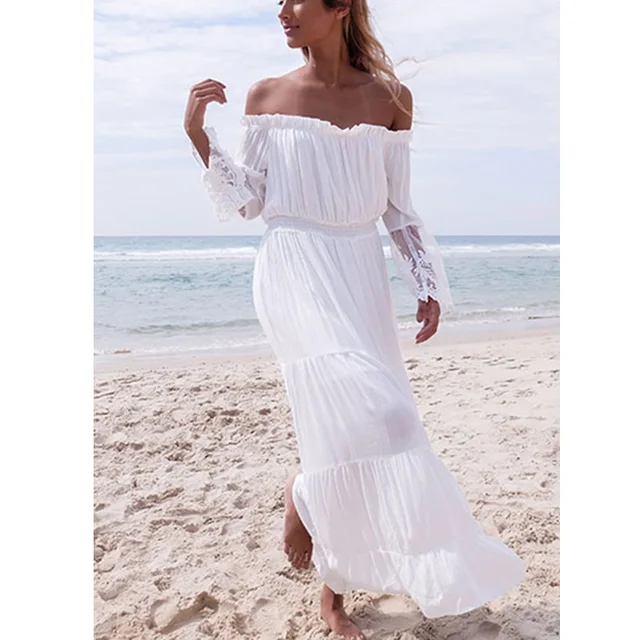 Miyouj Long Sleeve Lace Off Shoulder Beach Dress White Strapless Ladies US $14.74 / piece. US $13.40. Free Shipping. Milankerr Beach Cover Up Women Sexy Off Shoulder Bikini Cover-Ups Flare Sleeve Lace US $22.50 / piece. US $20.25. Free Shipping tunic off shoulder beach cover up reviews: summer dress beach white swimwear long tunic pareo