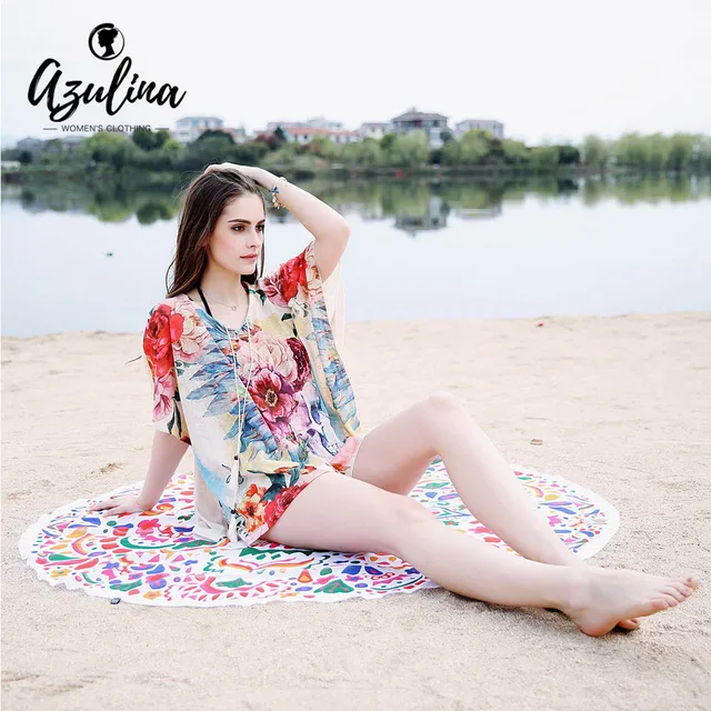 Price Compare - AZULINA Bikini Cover Up Women Shawl Round Beach Wear Towel Picnic Tapestry Print Mat Fashion Sexy Bikini Cover-Ups Beach Mujer Cheap