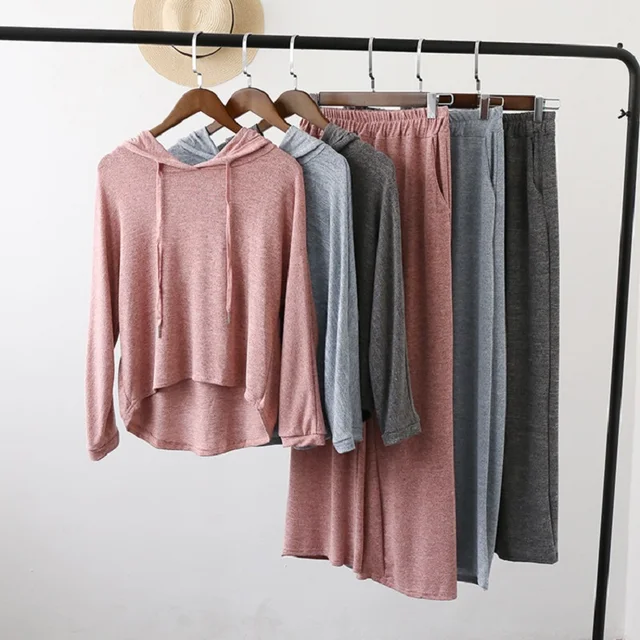 Price Comparisons For - 2018 autumn and winter new women's long-sleeved hooded sweater casual trousers two-piece suit solid color casual wear home Best Offers