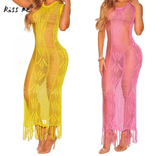 Affordable - Wholesale Sleeveless Women's Dresses Tassel Hollow Beach Cover Up Yellow Patchwork Beachwear Cover-Ups Summer Dress for Women Special Offers
