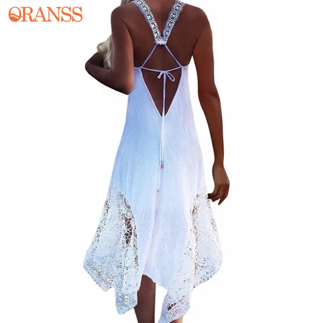 Compare - 2018 Women Summer Beach Dresses Long Lace Up Hollow Out Backless Straps Beach Cover-ups Sleeveless Soft Beach Dresses Plus Size Best Price