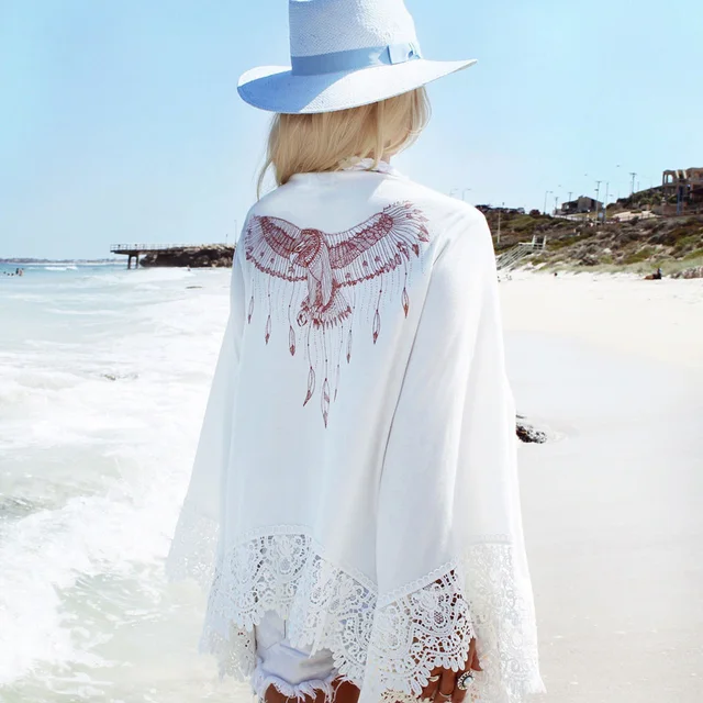Price Comparisons - Swimwear Beach Cover Up White Crochet Beach Tunic Eagle Pattern Print Women Bikini Cover-Ups Female Loose Dress Swimwear SCL537 Best Offers