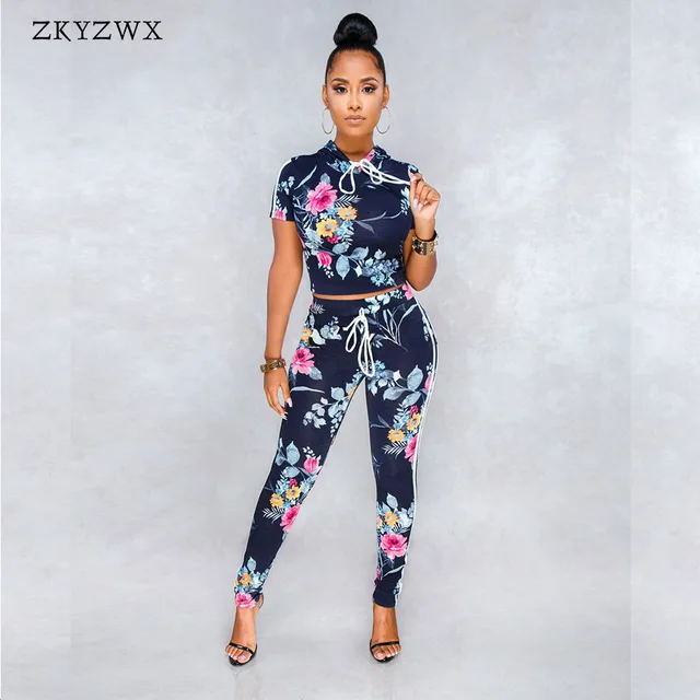 Where Can I Buy - ZKYZWX Two-piece Suits Summer Fall Hooded Top+Bodycon Long Pants Outfits Streetwear Flower Printed Tracksuit 2 Pcs Matching Sets Best Offers