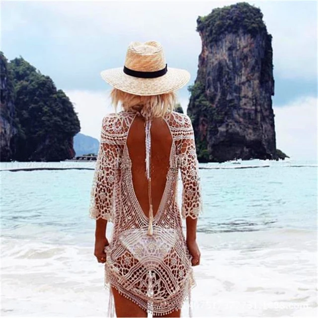 "Hollow Out Crochet Bikini Cover Up" See more. Women Hollow Out Beach Bikini Cover Up Swimsuit Bathing Swimwear Dress USA Stock. saida de praia Beach Tunic Swimwear Tassel Dress Swimsuit Cover Up Sarong Beachwear 2017 Bikini Crochet Cover-Up robe de plage" "Beach boho Sexy Tassels Weave Black Bikini Dress Cover Up. Cute bohemian cover