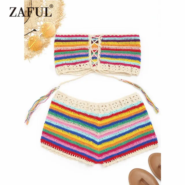 Colorful Strapless Crochet Top And Shorts Women Beach Cover Up Lace Up Bikini Stripe Cover Up Summer Crochet Beachwear Find this Pin and more on Wish List by heyhellocee. Shop trendy fashion swimwear online, you can get sexy bikinis, swimsuits & bathing suits for women on ZAFUL.