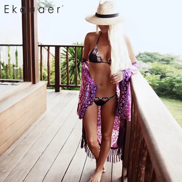 Details about Women Chiffon Print Bikini Cover-up Tassel Loose Long Beach Front Open OK 02. Women Chiffon Print Bikini Cover-up Tassel Loose Long Beach Front Open Swimwear Colors/Purple=Sizes/XL. 100% Brand New Chiffon Animal Print Cover-Up Swimwear for Women, Chiffon Long Loose Pants for Women,