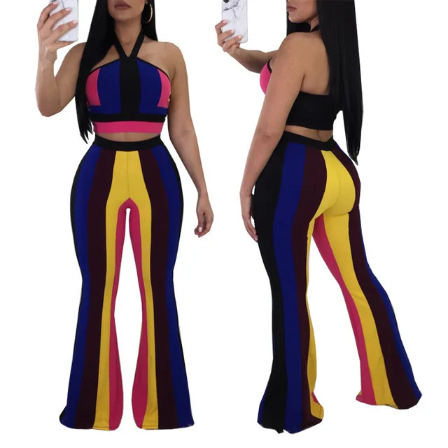 Price comparisons Of - 2018 European And American Women's Net Red Sexy Rainbow Wide-leg Pants Suit Two-piece Suit Wholesale Sales Special Offers