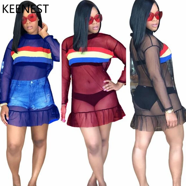 Who Sells Sheap - KEENEST Striped Mesh Lace Bikini Cover-up Women Sexy Covers Up Swimsuit Beach Wear S-XXL 3459 Best Offers