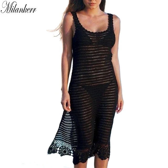Best Price Knitted Beach Cover Up Dress Women Summer Beach Wear Crochet Suspender Swimsuit Cover-Ups Split Pareo Smocks Femmes Robe De Plag