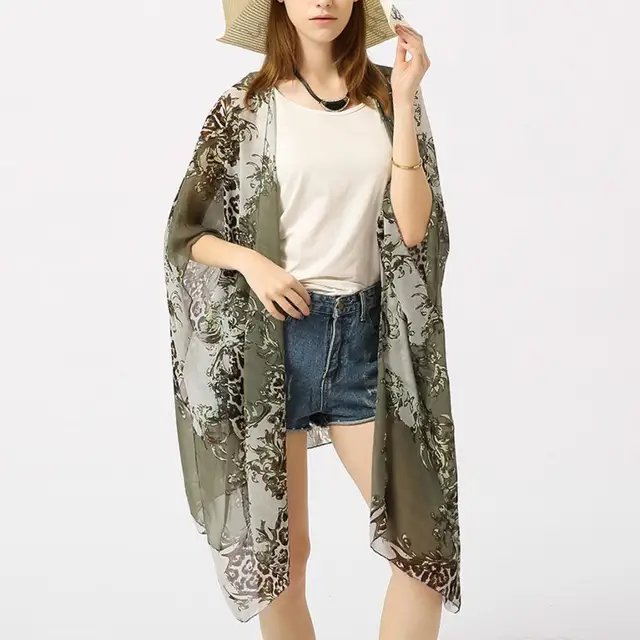 Best Price - Women Chiffon Sunscreen Print Beach Bikini Cardigan Half Sleeve Open Up Loose Thin Coat Ladies Cover-Ups Swimsuit Tops Wonderfull