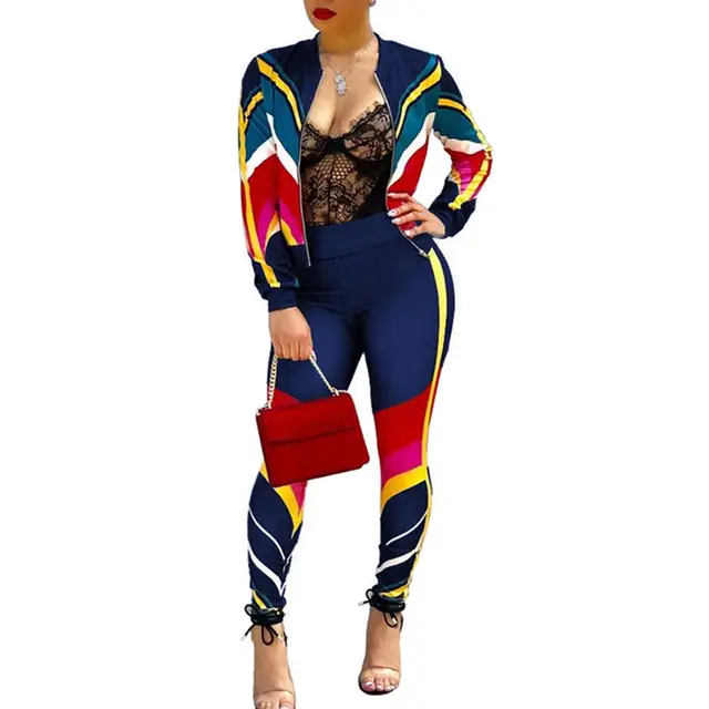 Cheap - 2018 New European And American Style Sexy Striped Contrast Color Two-piece Suit Sports Suit Women's Two-piece Suit S To 3XL Wonderfull